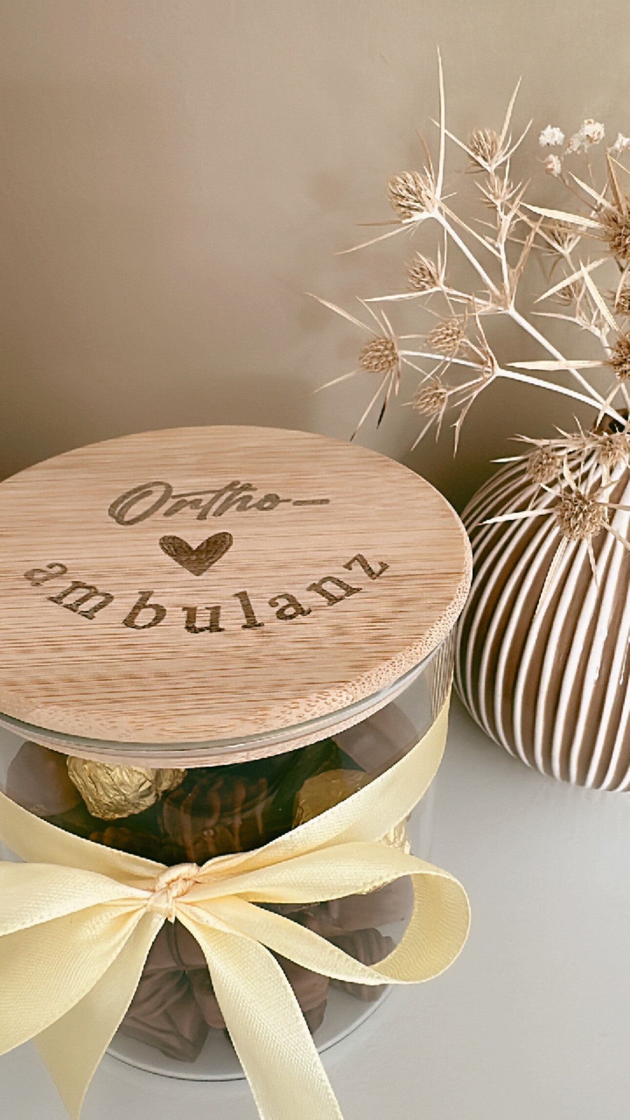 Vorratsglas mit individuell gelasertem Holzdeckel
